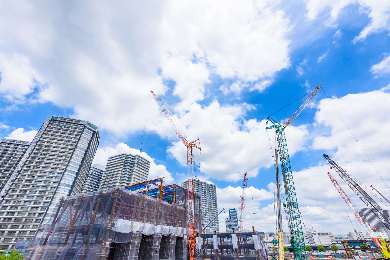 「建築」は、住宅やマンション、ビル、商業施設などの建築物を新しく建てたり、建て替えたりすることで、